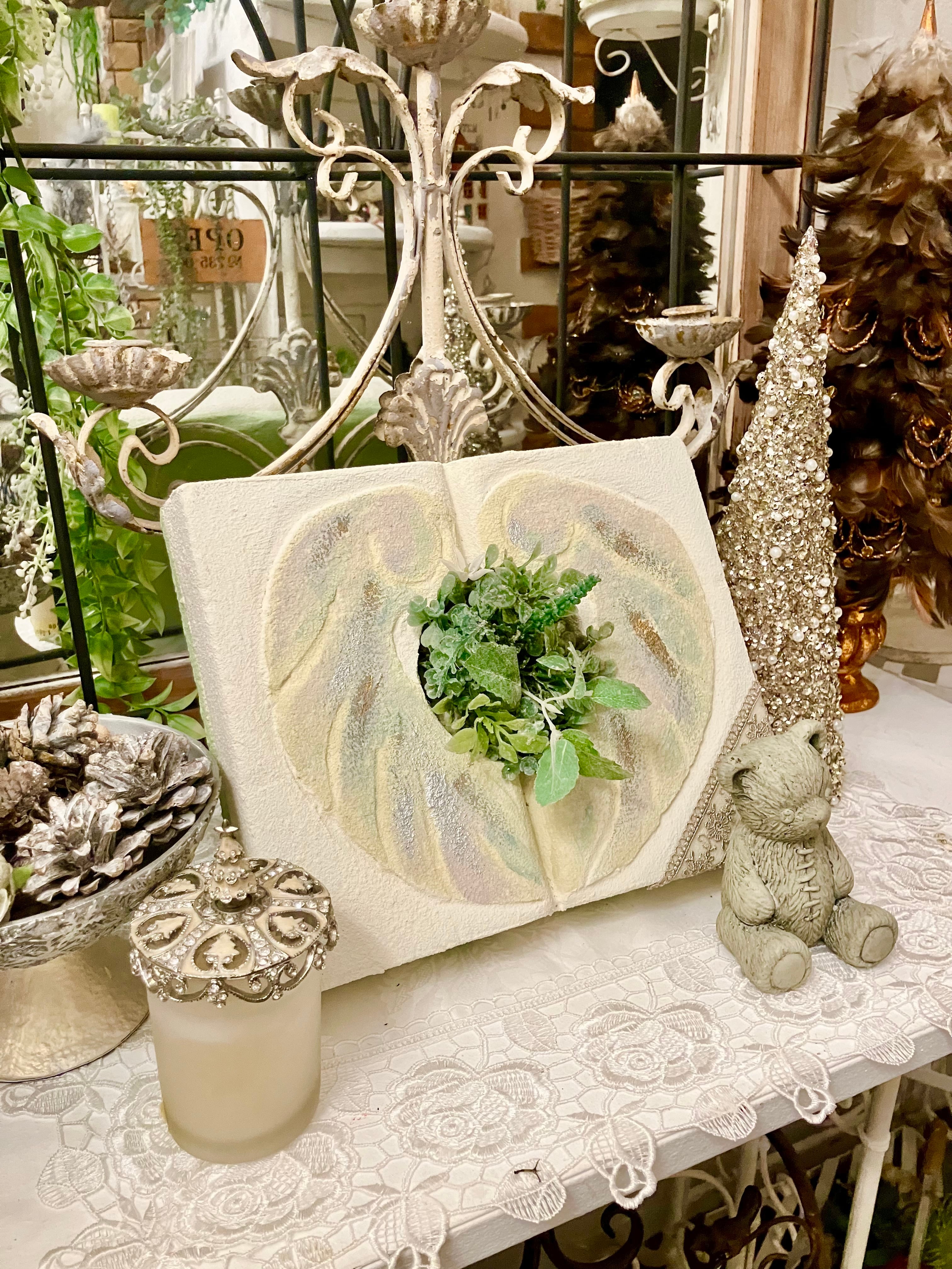 中央にプランターがあり、飾る場所によって多肉植物を植えたり、造花やドライフラワーなどで彩っていただけます。