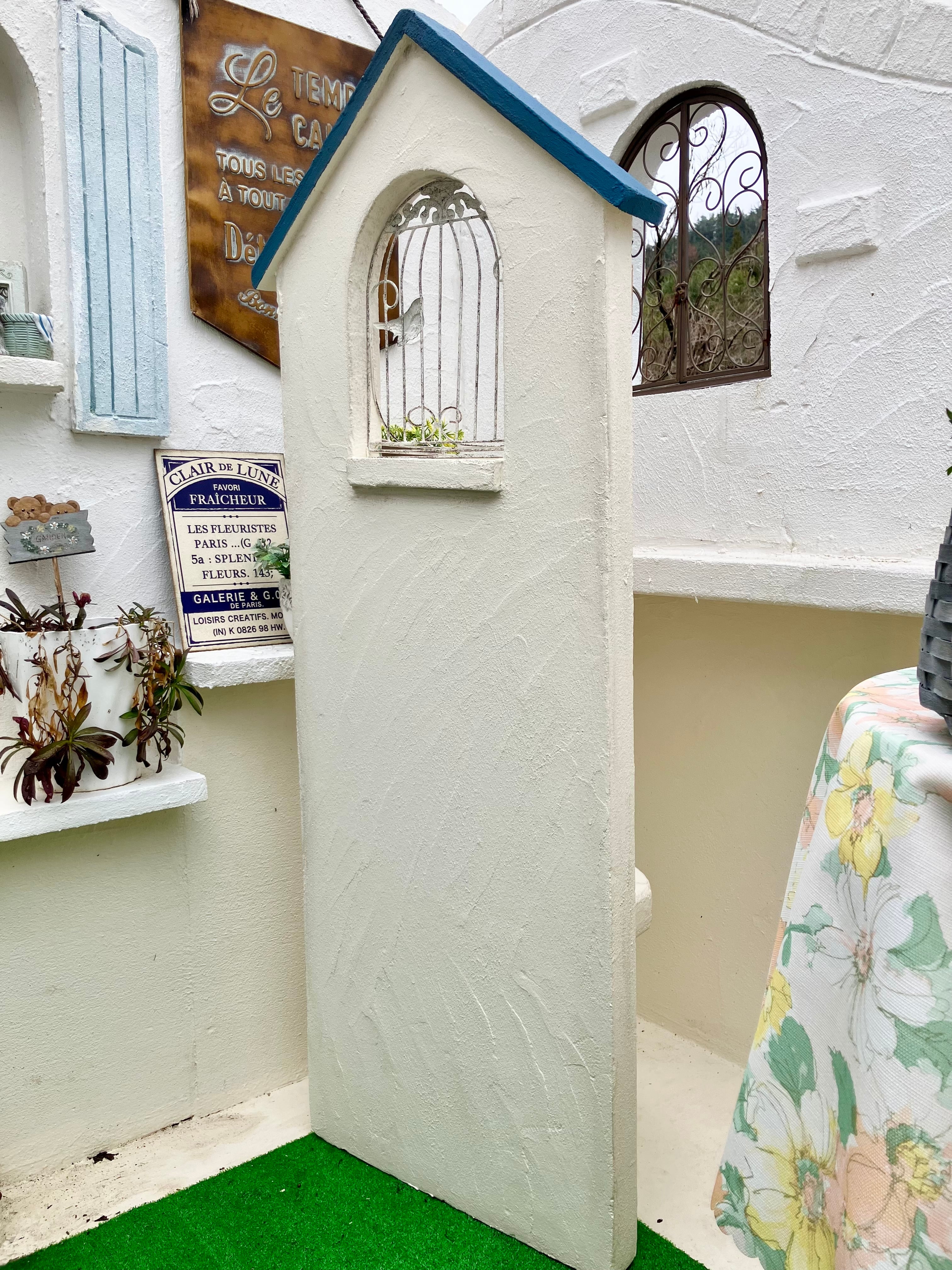 屋根の青色が良いアクセントになってます。スリムで高さもあるので、立体的なガーデンコーナーが作れます。